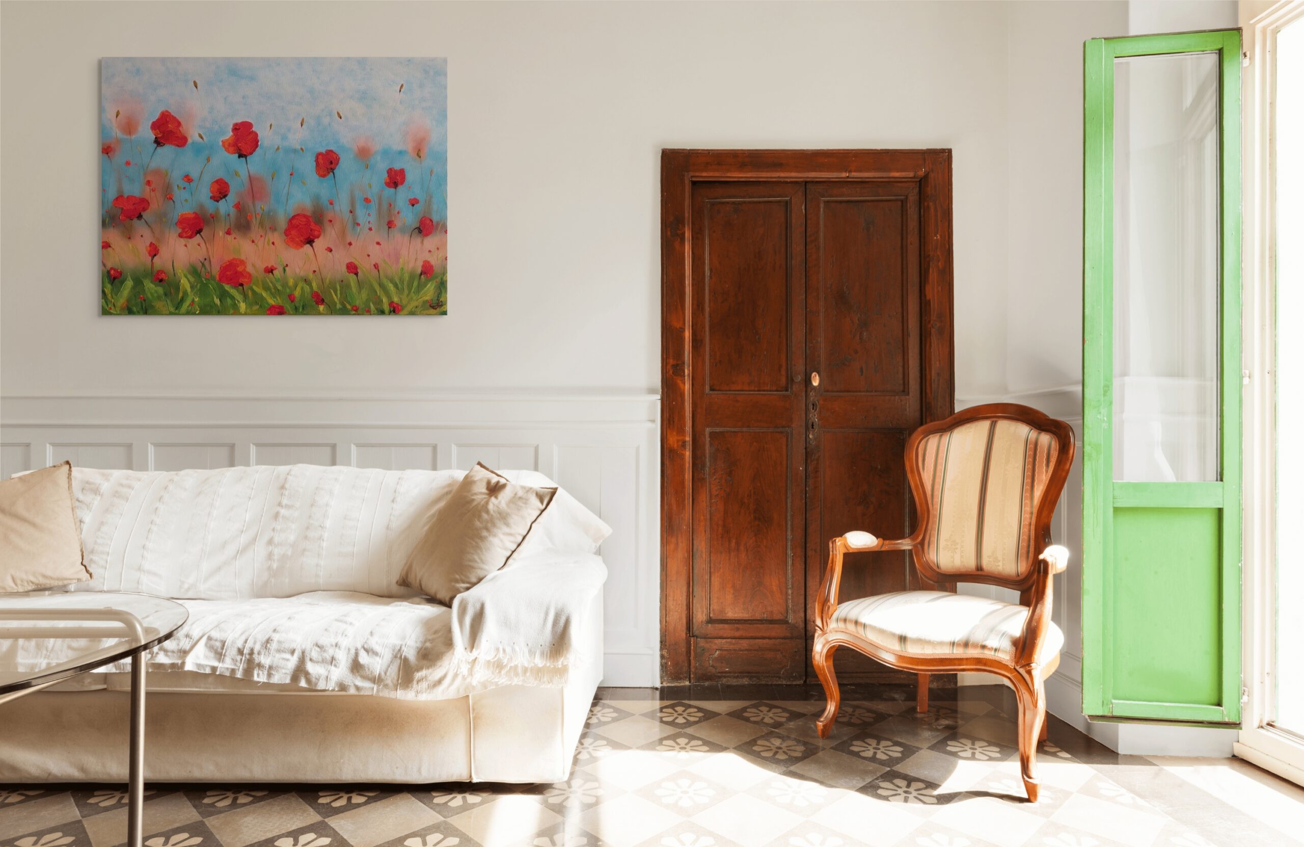 Pozadí obrazu je namalováno pomocí štětců, ale na trávu a květy máků jsem použil téměř výhradně malířské špachtle. Obraz se díky tomu stává plastickým. Na obrazech mě fascinuje to, že mají tu moc nás v našich představách přenést na dané místo, které zobrazují (pokud jim to vnitřně dovolíme). Může být venku nevlídné počasí, plískanice a vy se procházíte loukou posetou máky, no není to nádhera?