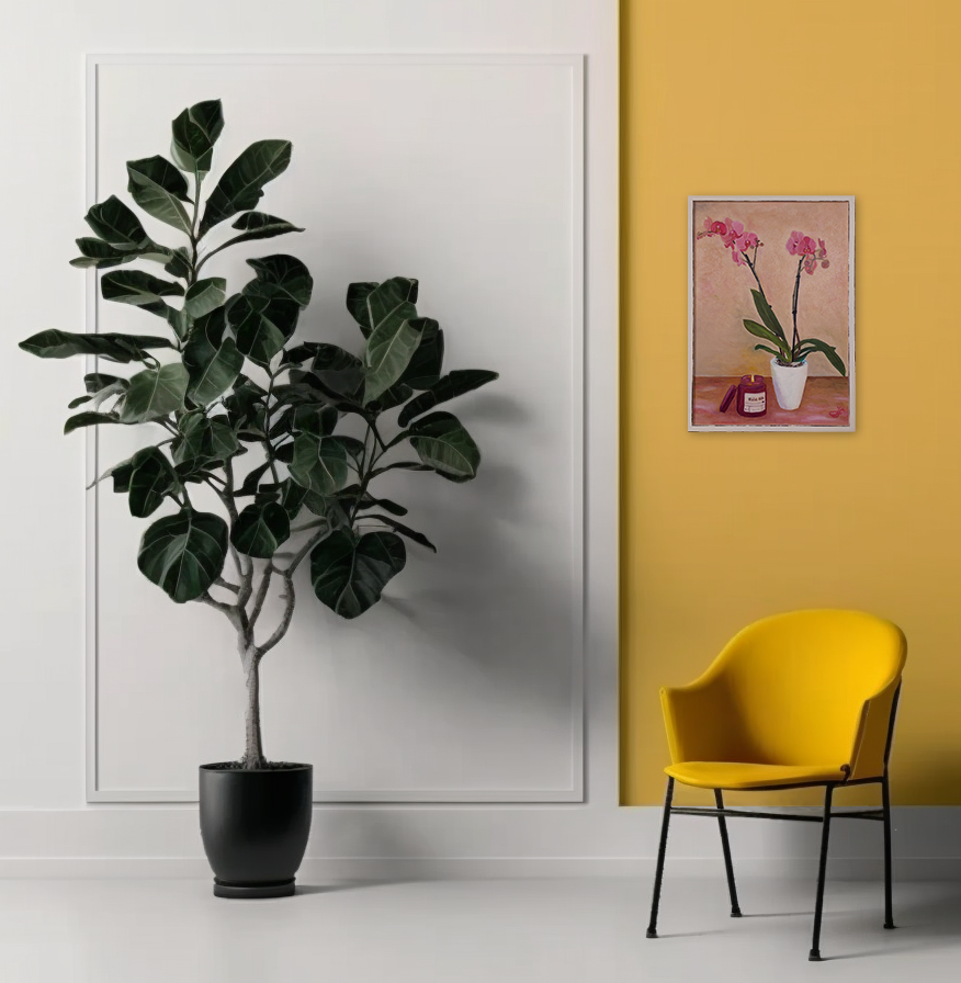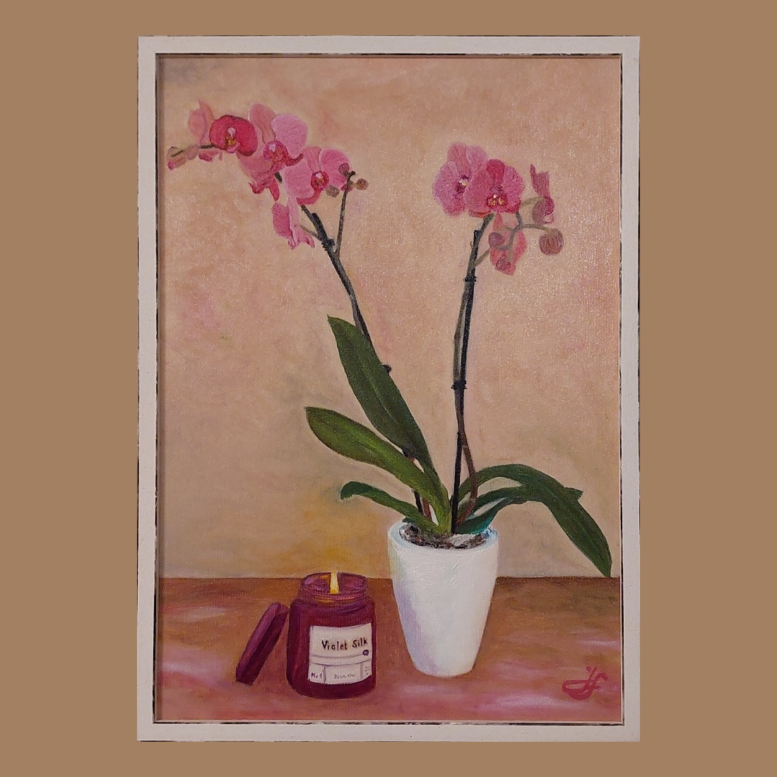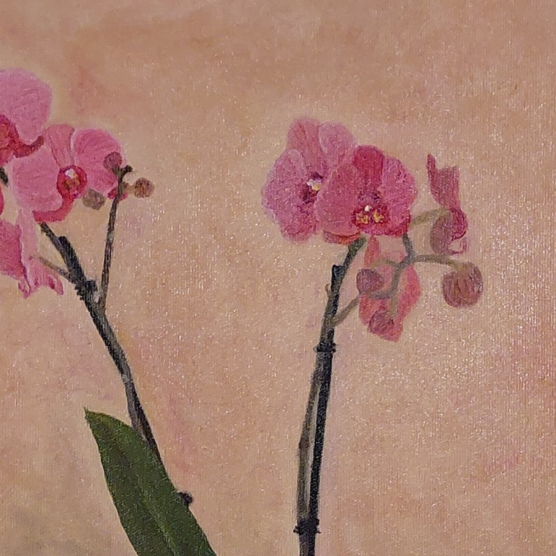 Už nějakou dobu jsem uvažoval nad namalováním obrazu s motivem orchideje a když se k nám stavili po delší době jedni známí a dovezli mé ženě tuto orchidej, tak jsem si řekl, že je vhodná příležitost přenést její krásu na plátno …
